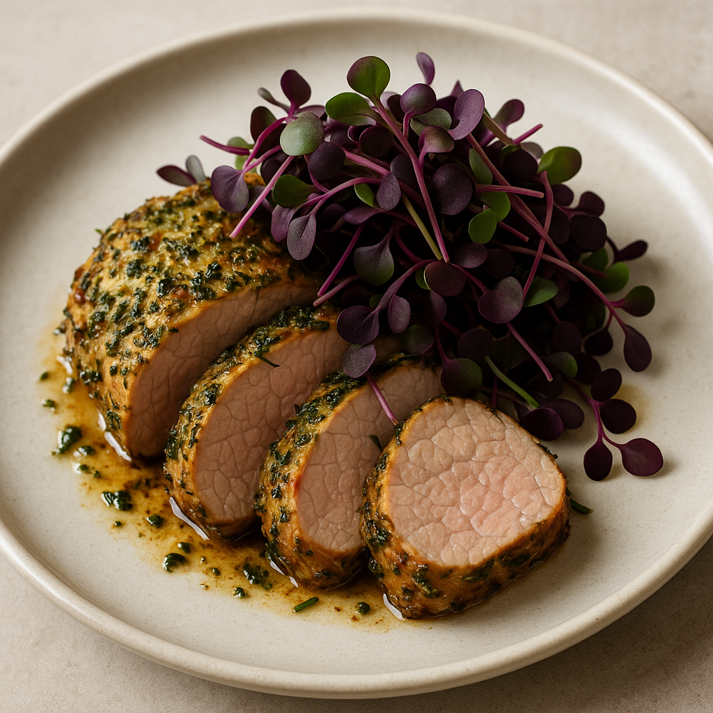 Radish microgreens are best added fresh as a finishing ingredient. Tender herb-crusted pork tenderloin with a spicy radish microgreen finish that adds heat and freshness.
